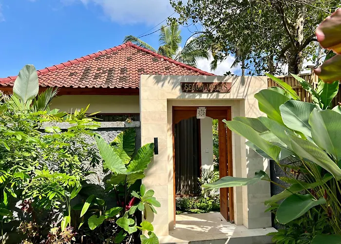 Located 1.6 miles from Ubud Kajeng Rice Fields Walk, Seaom Villas Ubud offers live performances for guests' leisure. The 2-bedroom villa, situated a 10-minute drive from Jalan Kajeng, invites guests to enjoy views of the pool from a terrace with a swimming pool.